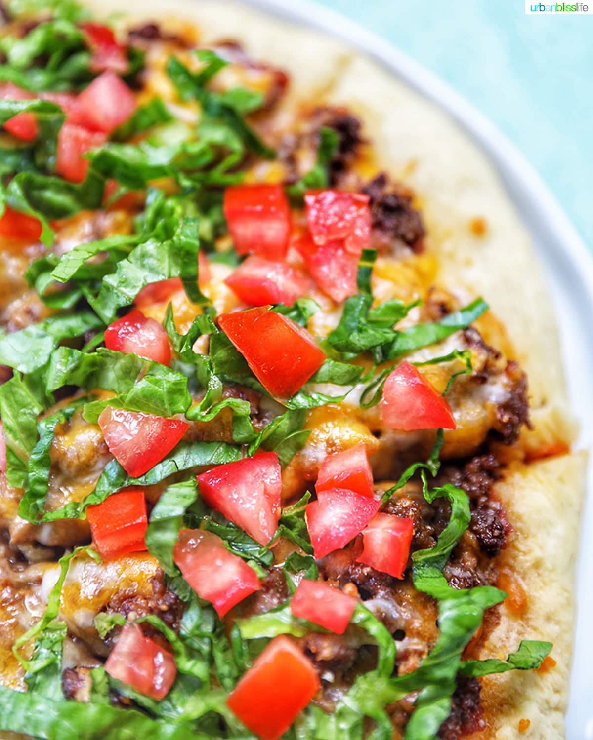 Sliced romaine lettuce – iI you want to be super traditional about your taco pizza toppings, go with iceberg lettuce. I prefer the subtle added flavor and richness of romaine lettuce. It still gives you a nice crunch when you bite into it.